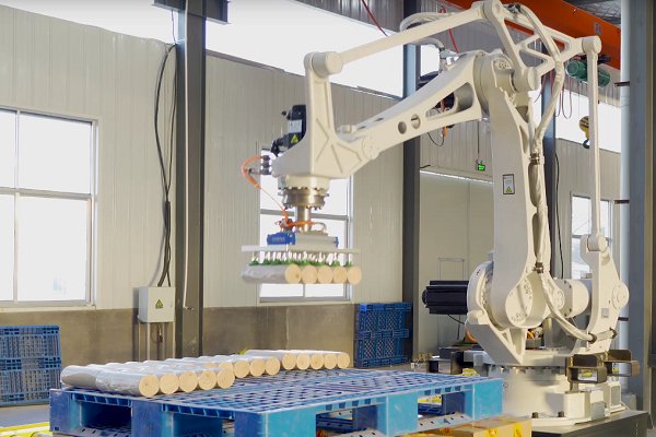 燃料棒自動(dòng)套膜收縮碼垛包裝線,主要由輸送機(jī)、視覺識(shí)別、稱重剔除機(jī)、自動(dòng)整理、套膜收縮機(jī)、自動(dòng)供棧機(jī)、機(jī)器人自動(dòng)碼垛機(jī)、全自動(dòng)在線纏繞機(jī)等設(shè)備組合而成。