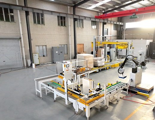 玉米面條十字封箱機(jī)是由開箱機(jī)、折蓋封箱機(jī)、90度轉(zhuǎn)向機(jī)構(gòu)、半自動(dòng)一字封箱機(jī)以及協(xié)作機(jī)器人碼垛機(jī)組成,該線體根據(jù)用戶現(xiàn)場(chǎng)比較緊湊的實(shí)際情況而設(shè)計(jì),開箱機(jī)出料口高度較高,在成品紙箱上面,成品紙箱輸送機(jī)2側(cè)坐人進(jìn)行裝箱,抬手即可拿取空紙箱,大大減少了設(shè)備的占地面積,同時(shí)方便用戶的實(shí)際操作。尾端配備協(xié)作機(jī)器人碼垛機(jī),占地面積小,成本低,雙抓設(shè)計(jì),工作效率高,特別適用食品類小紙箱的開封箱碼垛包裝。